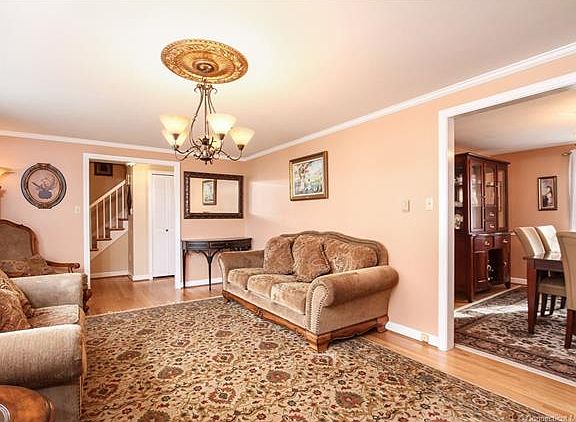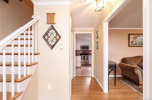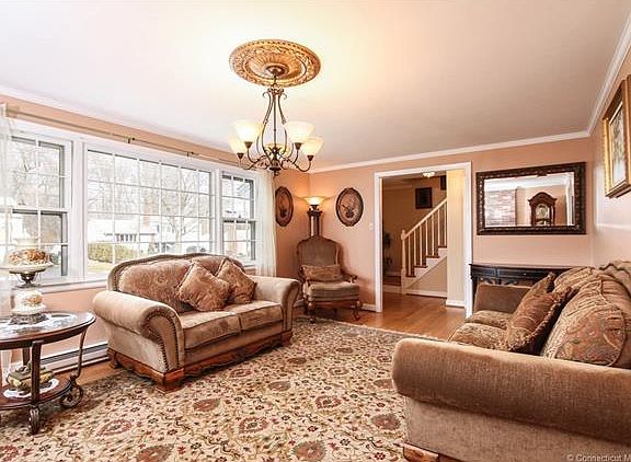 Spacious and well-loved 8 room Colonial in the Emerson Williams School District. Front foyer welcomes your guests. Formal living room with wood burning fireplace leads to formal dining room. Eat-in kitchen with newer stove, microwave, refrigerator and dishwasher. First floor family room with wall of windows allows plenty of light and is versatile for your needs (could be a first floor bedroom). Home has four bedrooms upstairs, one full and one half bath. Special touches, such as chair-rail and crown molding in several rooms. Generous closet and storage space throughout, including storage closet and shelving in the laundry room. Deck (18'X12') was updated with Trex material two years ago. Oak floors throughout. Electric heat with individual thermostats in each room, for maximum efficiency. Additional 400 finished square feet in lower level recreation room with fireplace. House has been analyzed and qualifies for solar panels. Convenient to local market, park and bus line.