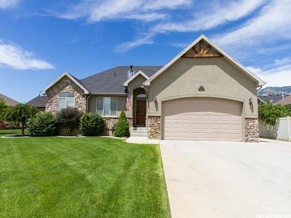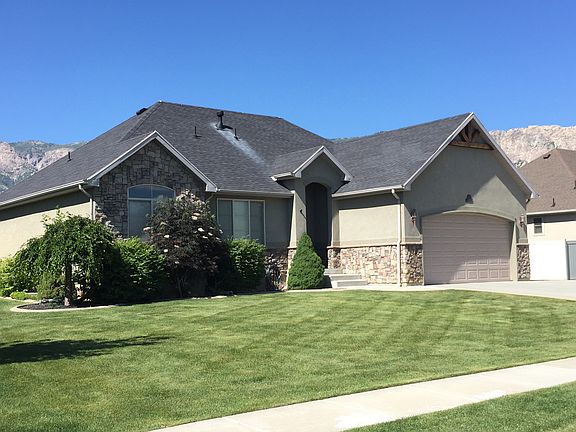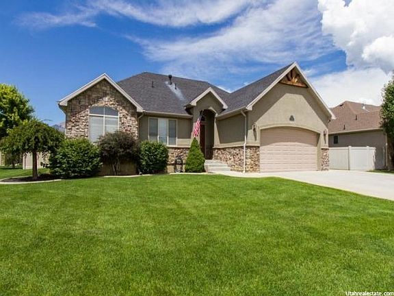 Price Reduced $5000. Sale failed due to buyers finance. Pride of home ownership is reflected in this fully finished custom rambler loaded with all the bells and whistles fully finished with neutral decor, formal entry, large open vaulted great room off the kitchen full of windows gives you a stunning view of the Ben Lomond peak, 2-tone paint, island kitchen, silestone quartz counter tops and semi formal dining room, grand master suite with large jetted tub and WIC, basement is newly finished 2 large bedrooms a full bath and family room designed with a wet bar or a 2nd kitchen in mind 12x40 plus RV pad fully fenced vinyl back yard and much more. Main floor laundry, central vac, fifth bedroom could easily be used as an office or formal front room.