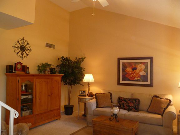 WOW... This charming home looks like it belongs in a magazine! Private end unit has tons of character and has been updated beautifully. Features cozy fireplace with custom built-in shelves, duet blinds, neutral carpet, tile, neutral paint & ceiling fans throughout. Updated kitchen boasts coffered ceiling, flat top stove, built-in micro, pull-out shelves, under cabinets lights + fridge! Dining also has custom built-in shelves, coffered ceiling and chandelier. Private master suite upstairs offers vaulted ceilings, 2 closets + linen. Bedroom down has direct access to bathroom and access to the private cozy patio, which you won't want to leave! Beautifully done- well manicured plants, drip system, attached trellis and epoxy floor. This is great place to call home :)