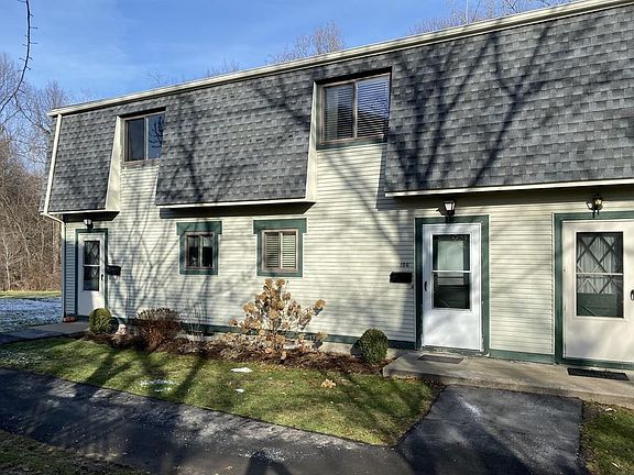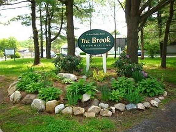 This townhouse at The Brook is special and unique & on the PVTA bus to Amherst Center & UMASS. Totally renovated in 2007, contemporary 2 bedroom, 1.5 bath condo touts hardwood maple floors on both levels; modern kitchen (maple cabinetry, granite counter on island with overhead lighting & fan; new Bosch dishwasher + disposal); replacement windows & newer slider to enclosed, wood deck, facing woodlands. Remodeled 1.5 bathrooms feature new fixtures, including vanities & shower/tub in main bath, plus beautifully tiled floor & shower walls. Main bedroom sports maple floors & built-in maple closets with both sconce and recessed overhead lighting. The condo was' re-wired with added insulation and soundproofing' in 2007, so owner enjoys plethora of lights and ceiling fans w/ lights in each bedroom, kitchen & living room. The built-in stereo system should be operative (but current owners did not use it); volume controls in each room. Will you be the lucky buyer?!