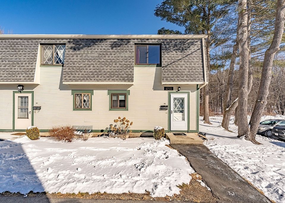 Discover this delightful 2-bedroom, 1.5-bath end-unit condo at the Brook Condominiums in Amherst.The refreshed kitchen shines with new countertops, freshly painted cabinets, a brand-new range, and a newer stainless steel dishwasher and refrigerator. The inviting living room has a slider leading to a private deck that backs up to conservation land. Upstairs you will find the two light filled bedrooms and the full bathroom. The main bedroom looks out onto the woods behind. Additionally, this condo features a finished basement with durable vinyl plank flooring, perfect for a cozy family room and a home office, along with additional storage under the stairs and a laundry room. Enjoy the convenient location of this condo community settled in next to conservation land and featuring a swimming pool and shared green spaces.