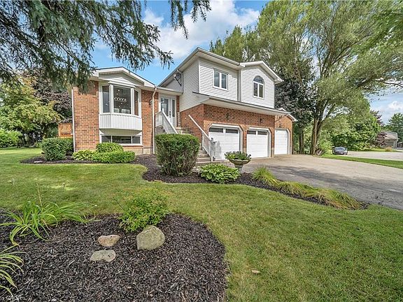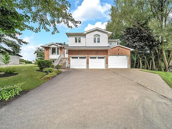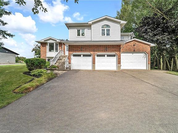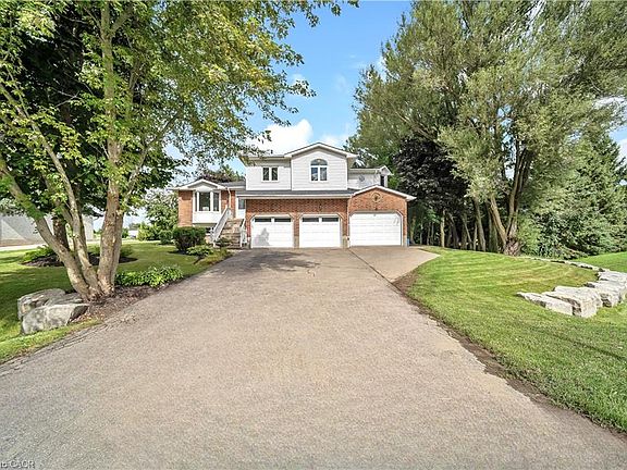 Elora Beauty You Don't Want to Miss ; Multi Level Split Detached property at CUL DE SAC , a perfect Escape to the Country, Just Minutes from the City! Discover this 0.45-acre rural retreat, perfectly situated only 10 minutes from Guelph, 8 minutes from Fergus, and 10 minutes from Elora. Nestled in the quiet suburb of Ennotville on a peaceful cul-de-sac, this fabulous family home blends the charm of country living with modern updates throughout. Inside, the open-concept layout offers a welcoming flow. The large formal dining room features gleaming hardwood floors, while the custom kitchen showcases granite countertops, quality cabinetry, and a breakfast bar. Patio doors lead to the back deck, making indoor-outdoor living a breeze. Gather in the cozy family room with its wood-burning fireplace, or step outside to the resort-style backyard oasis. Upstairs, you'll find three spacious bedrooms, including a primary suite with a beautifully updated 5-piece ensuite, plus a modern 4-piece main bath. The finished basement extends your living space with an additional bedroom and recreation room. Outdoors, enjoy an expansive newer deck, professionally landscaped yard with irrigation system, and a large storage shed. Parking is no concern with a 3-car garage and a wide driveway perfect for vehicles, trailers, or toys. This is a rare opportunity to enjoy rural tranquility with city convenience book your private showing today! 2022- WINDOWS,FURNACE/AC-2016; PROPANE- 2023 GOOD FOR 25 YEARS; WATER SOFTENER & REVERSE OSMOSIS OWNED.