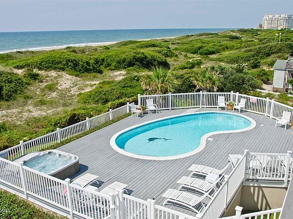 This Ocean Front Estate located conveniently in the middle of the fishing village of Salter Path.It adjoins the Roosevelt Preserve which insures the view and enhances the long term value. It is a short walk to restaurants and shops, but still is very private. A new septic system is being installed this Fall ( see attached permit in documents) which give it a permit for 8 bedrooms including the two in the separate Guest House. Both houses are furnished with the finest of furniture and fabricsThe pictures cannot do it justice. Truly a home for Architectural Digest! Rec Room w/wet bar, elevator, gourmet kitchen porches, garages, pool with cabana and hot tub. PLUS a separate 2 BR/2BA Guest/Carriage house with the same finishes as the Main House w/2 car garage also. Rent the Guest House for mo
