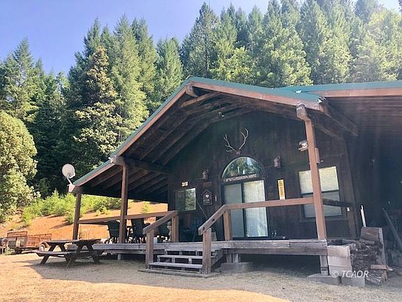 COVETED FOREST GLEN HOME ON 8+ ACRES! Located in the desirable Forest Glen area, this is a great mountain get-away retreat in the wilds of Trinity County! Beautiful cabin just off of HWY 36, on a private gated drive with public power connected. Nicely kept home offers an open floor plan that includes a kitchen, with custom pine cabinets and island, a living room with beautiful river-rock hearth and wood stove, a full bathroom, one bedroom, laundry area, and mud room. Large covered deck great for BBQ'ing, relaxing while taking in the peace and quiet of the natural surroundings, and simply enjoying outdoor living in the mountains. Property borders a creek, with nice flat area for camping guests, and is literally a hop, skip and jump from the South Fork of the Trinity River! Property also borders USFS land, and you can literally walk over the ridge and drop down to the river, or just take a 2-minute drive to the river... With most furniture, appliances, and kitchenware included, this is an easy move-in-ready second home, or full-time home! This is a RARE offering of a home on PRIVATE LAND in the Forest Glen area - no leasing of the land with this one - don't delay as this one won't last long!