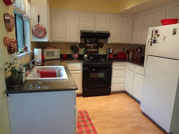 Gibson Station is a well-maintained, gated community within walking distance to schools, shopping, and entertainment.This lovely home features 2 bedrooms each with its own bathroom plus a half bath downstairs. Updated kitchen has granite counters and newer appliances, laminate flooring and a nice all electric fireplace. Cute low maintenance patio leads to the 2-car garage. Community features include pool and clubhouse!