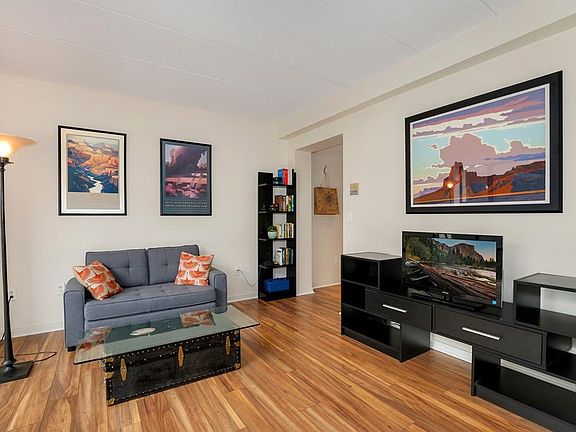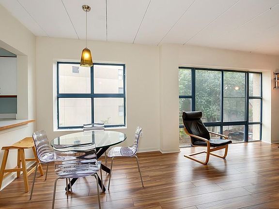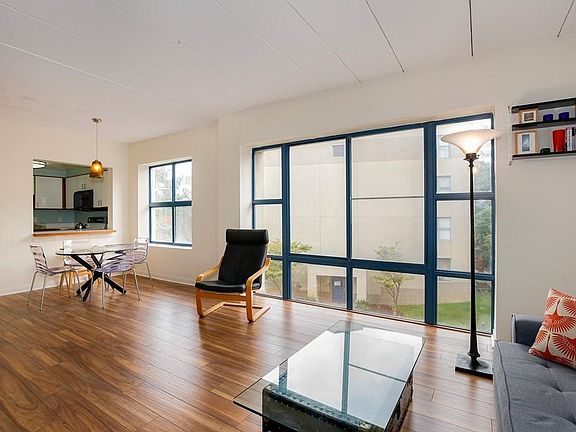 Corner unit with large south facing windows and great natural light! As you enter this lovely home you are greeted by a wide open floor plan, attractive new wood laminate flooring and abundant natural light from the nearly floor to ceiling windows. The living room is completely open to the dining room. A galley kitchen features a newer refrigerator (3/18), a breakfast bar and a window overlooking the main living area. The generous master bedroom, an adjacent full bathroom, and in-unit laundry complete the home. There is additional storage conveniently located on the same floor just outside of the unit and one garage spot. Enjoy the amenities including an outdoor pool, a gym, and use of a bike room in the garage. In an excellent location close to shopping and the T. Come to see this pristine home at the open house!