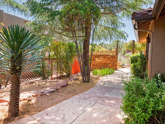 Looking for privacy? Here it is! Classic SW-style, single level, w/ tile roof, & freshly painted exterior in February 2020. Wonderful 2 BD/2.5BA + full-sized bonus room that can be used as 3rd bedroom or office - or big enough to be both! This home is a gem at the end of a private dead-end road. The minute you pull into the drive you know you are somewhere special when you see the gorgeous custom stone privacy wall & beautiful desert plant specimens - all w/ a view of Thunder Mt. In the heart of W. Sedona on .32 acres - w/ more privacy than you can imagine in the spectacular outdoor space transformed into a garden sanctuary. Filled with mature trees, fragrant jasmine, stone walkways, footbridges & water features + various patio & seating areas -all landscaped with love & care!