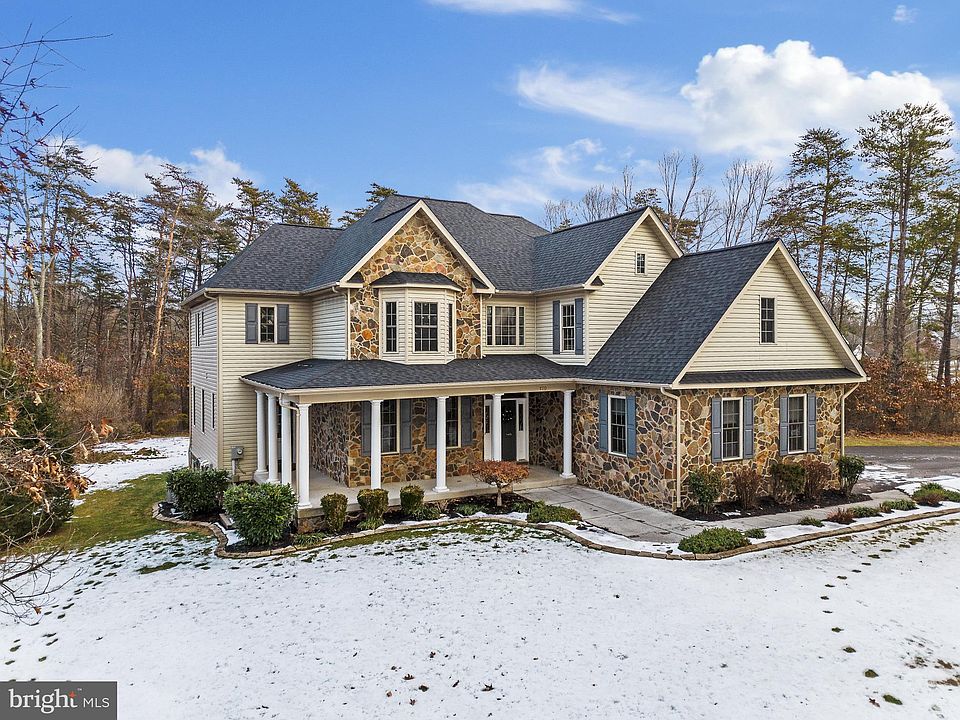 NEW PRICE! Welcome to your luxurious oasis in the woods! Private, but near Winchester, this French influenced home sits on five acres, features a covered front porch, stone accents, a screened in porch and a three car garage. Lot is both wooded and open. Inside offers six bedrooms (one main level), five full bathrooms, two fireplaces, gourmet kitchen, hardwood floors, mudroom, and finished basement with bar and salon room that could easily be a second kitchen. The unique main floor plan is usable, spacious AND cozy at the same time. Whole house generator. Downstairs furnace and cooktop new in 2023. Newer refrigerator, dishwasher & microwave. Basement was finished in 2020. Roof approximately 5 years old. Hughes Net Fusion available. Seller now offering $5,000 carpet allowance!