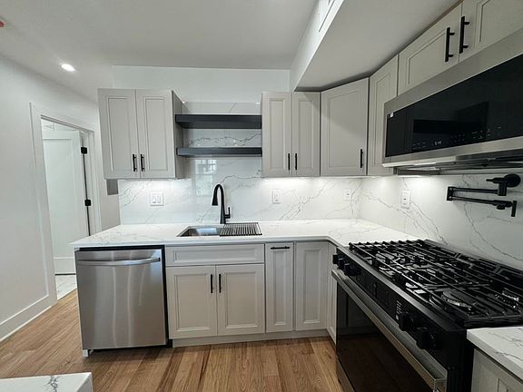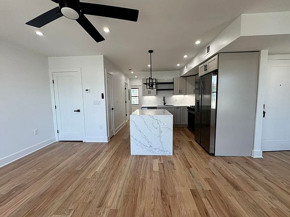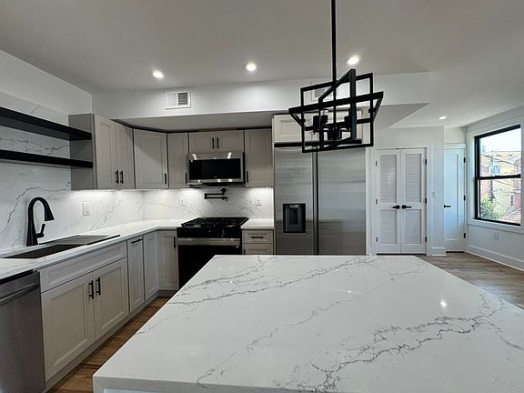 Discover sophisticated urban living at 170 Griffith #2, a stunning 2-bedroom, 2-bathroom rental nestled in the vibrant Jersey City Heights. This thoughtfully designed unit offers a perfect blend of style, comfort, and convenience. The heart of this home is its exceptional kitchen, a chef's dream featuring sleek shaker cabinets, brand new stainless steel Samsung appliances, under-cabinet lighting, and a convenient pot filler. The show-stopping waterfall island provides ample prep space and a perfect spot for casual dining. The spacious primary bedroom is a true sanctuary, boasting a private ensuite bathroom with a luxurious glass-enclosed shower. The second well-appointed bathroom offers a relaxing bathtub. Enjoy the ultimate in-unit convenience with a dedicated washer and dryer, and stay comfortable year-round with ceiling fans throughout. Located in a desirable Jersey City Heights neighborhood, you'll have easy access to local shops, dining, parks, and transportation options. Don't miss the opportunity to make this exquisite rental your new home!