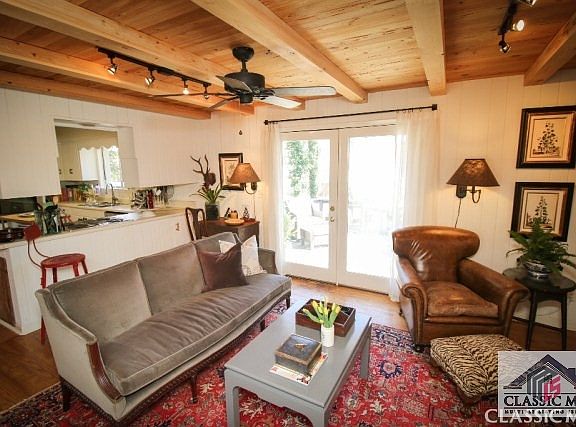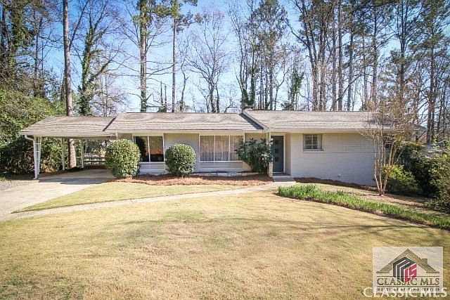 Stylish and stunning in Beechwood Hills, this all-brick ranch style home has it all: original mid-century charm, tastefully executed updates, and the ideal location within one of Athens' most desirable yet affordable in-town neighborhoods. The all-on-one-level floor plan features a large combined living room and dining area, a separate great room with fireplace, an efficient kitchen layout, an expansive back deck with sweeping views of the wooded back yard, two bedrooms and a hallway bathroom plus a master suite with attached bath. The finished basement features a second living area, office area, storage area, laundry room and a full bathroom, totaling almost 2,500 finished square feet. Other notable features include original hardwood floors, wood-clad accent walls and ceilings, expertly designed closet systems, a fenced back yard and a two-car carport. Buyers in search of a move-in ready home in the Five Points/Beechwood area should look no further.