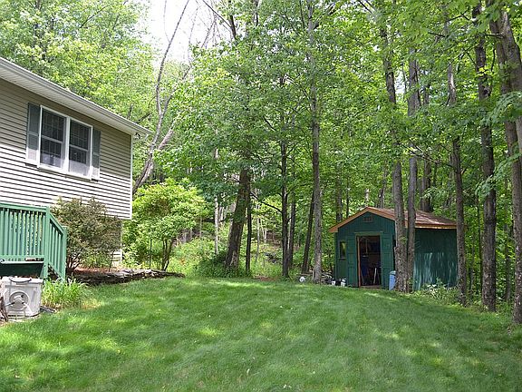 This beautifully maintained home has many custon built-ins designed and made by the owner. Easy living with an open floor plan on the main level and additional square footage in the lower level not included in the total. The private 2 tier deck in the back has a 16 foot Sun Setter awning allowing outdoor enjoyment with shelter from the sun and rain. Sitting there you find yourself in a bird's paradise! The updated kitchen with granite counter tops and large pantry with washer/dryer hook-ups is open to the dining area. The large master bedroom has a walk-in closet and private bath. There is no shortage of storage with much shelving and closets on both floors. Located on a rural dead end road with a beautiful seasonal view. This is country comfort at it's best!
