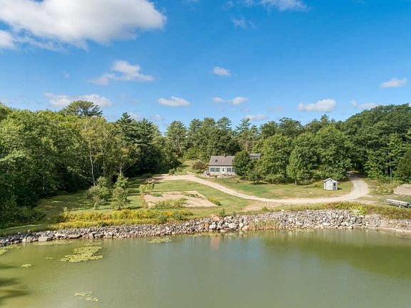 Enjoy remarkable privacy just minutes from the Village center. This charming Cape is set on over 50 acres of fields and woods and has a spring fed farm pond near the home and frontage on Paradise Pond further away on the property. Open concept interior with a lovely field stone hearth and a wood stove in the Living Room and a new pellet stove in the daylight, walkout lower level. There is also an old camp on the property that is used as a storage building. New septic system installed in 2020.You'll feel like you have your own kingdom when you live here!