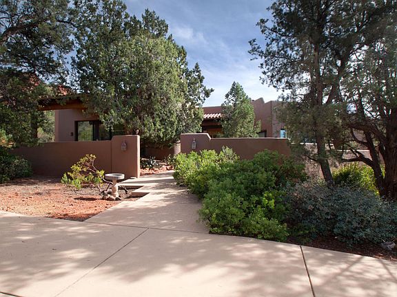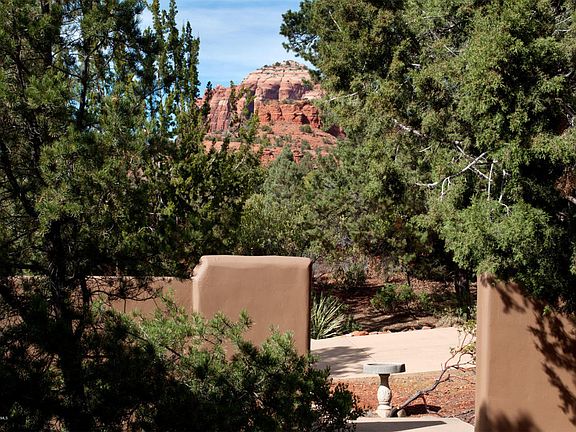 This Don Woods home in gated peaceful Highland Estates is a marvel. This is no builders "spec" house but a well thought out architecturally designed home that is geared to a relaxed and yet exciting lifestyle. Large windows in every room take advantage of all the magnificent red rock views and the mature landscaping provides beauty and privacy. A roof deck gives you a panoramic view of some of the most famous red rock monuments in Sedona all the way back to Cathedral Rock and Thunder Mountain in West Sedona. The large front out door patio and generous back deck give you great outdoor space, which is so important in Sedona. The patio is on the north side and the back deck is on the south side so you can pick your outdoor spot to relax or entertain for all seasons. See Supplement for more