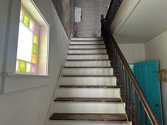 Take a walk back in time to the charm of the 18th Century, with stained glass windows, tin design ceiling. metal door handles and wood charm. This home is close to village and school with town water and sewer. This home is in need of someone who wants to bring back its charm and give it some love.
