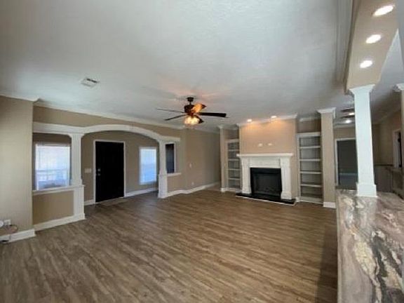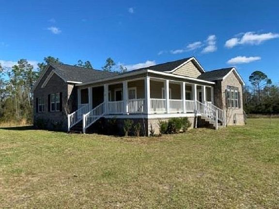 Spacious 3/2 Southern Ranch over 2700 sqft plus wrap around porch. This home was custom built by southern energy home builders in 2016 and updated in 2021. This home features huge island kitchen with a lot of cabinets, eat on bar area, fireplace with entertainment center. A split bedroom plan with spacious master suite with walk-in in closets and glamour bath. Located in Wewahitchka on just over 2 acres with fenced back yard. Financing is available including possible seller financing.