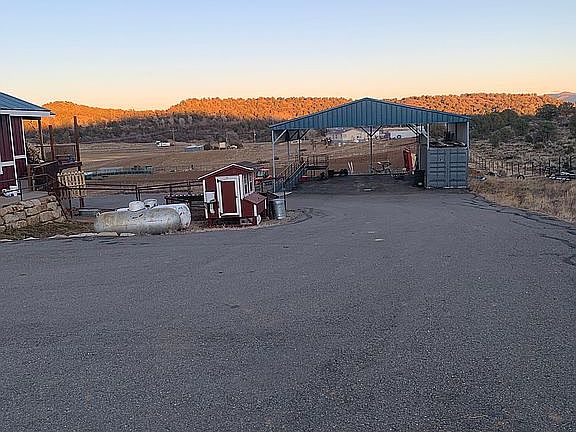 The property line is adjacent to HWY 160 with the convenience of being only 11 miles from Durango and 4 miles to bayfield. This property backs up to 180 undeveloped acres with new fencing added. Working style Farm house. Wide hallways open living plan. Large kitchen with two ovens and an oversized gas cook top. Plenty of cabinet storage and a big pantry. Bonus room above garage with 1/4 Wood burning stove on large stone hearth In floor heating Wood floors in kitchen and living room Practical roof line and 8 foot over hang keep most snow away from house and walkway clear. 10 foot ceilings on main floor and 9 foot ceilings in a partially finished basement. The over sized garage has plenty of room to park 2 large trucks. There are many shelves and storage room Fenced in front grass yard plenty of room to play in the summer time Fenced in garden area 28?x70? A huge shop 40?x82 with ( electric)14? x14? roll up doors on each end A pump house great for storing garden tools etc 8x16 A pole hay barn 24x 63 ft A covered RV pad with hook up and sewer 40x30 With beautiful views has an adjacent 20x40 zircon for storage A 140x240? arena return alley and holding pin. Asphalt around d the house that connects the barn to house to RV pad, allowing for less mess and ease of parking and maneuvering This could be used as an extra income air B and B location as well as having guests stay that have horses and need the space. This beautiful piece of property is a must see for the everyday roper or weekend farmer. 17 irrigated acres. water rights out of Thompson Eperson west lateral with additional 1/4 share out of dry creek( which runs through the property Property has permanent 5 Rail pipe fencing around pasture and dry lot where live stock roams. A remote gated entry for those that need a little more privacy and boundary.