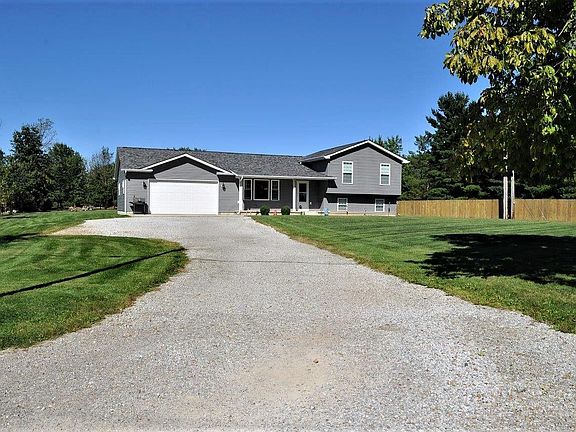 This beautifully updated 4 level split is situated on 1 acre just outside of town! Relax on your new deck while overlooking the backyard & easily host the next BBQ. The main level offers wood laminate flooring throughout including the living room w/cathedral ceilings that is open to the eating space w/access to the deck & kitchen w/all stainless steel appliances, Amish built custom cabinets & the laundry area. Enjoy the cozy family room in the lower level w/brick hearth wood burning fireplace & an additional bedroom/craft/workout room. Plenty of storage room in the lowest level & 2 car attached garage w/bump-out. Concrete driveway w/turnaround & more! Move-in ready! See A2A remarks.