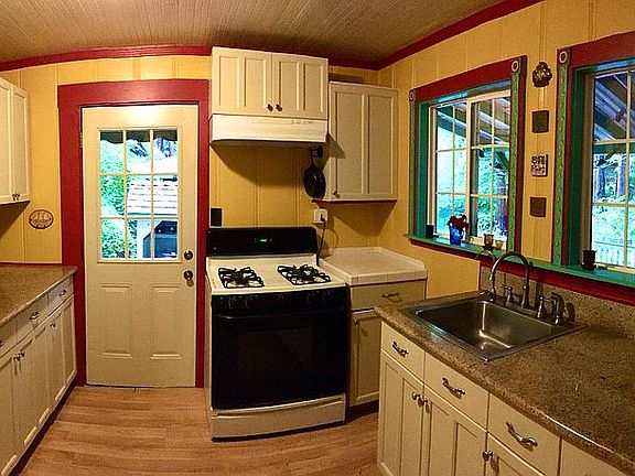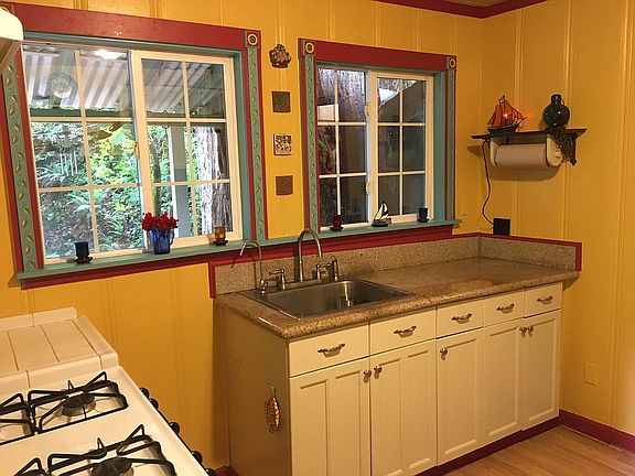 Welcome to 170 Hubbard Gulch Road! This 884 SqFt home is located just off scenic highway 9, offering peaceful mountain living with incredible walking accessibility to local downtowns, parks and restaurants. The year round flowing Marshall Creek runs alongside the property with an expansive deck space over a 1 car carport and 2 car driveway. Inside offers 2 bedrooms, an updated bathroom with additional office space. The kitchen comes equipped with stainless steel appliances, double pane windows and granite countertops. Updated luxury vinyl plank flooring and fresh paint throughout the living space. Custom stone fireplace with freestanding heater. Window views of the redwoods, creek, and the gorgeous neighborhood. Come enjoy this private, serene, move-in ready retreat today!