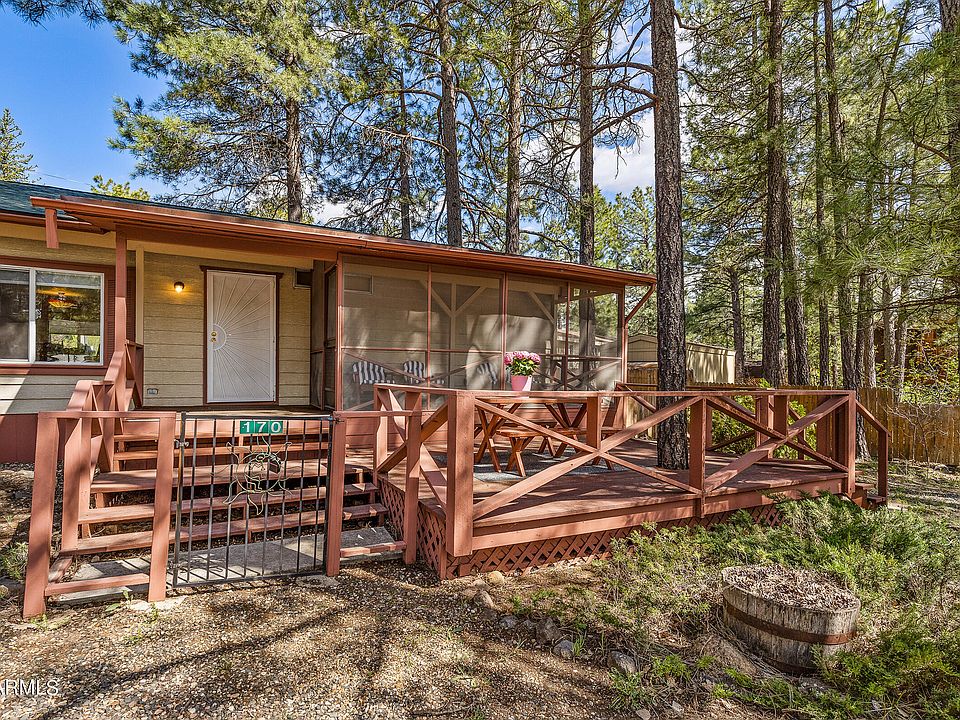 Welcome to this cozy home nestled among the trees. As you approach the property, you will notice the spacious lot. The fenced-in yard provides privacy, perfect for your pets. Take a moment to breathe in the fresh mountain air and enjoy the tranquility of the cul-de-sac lot.