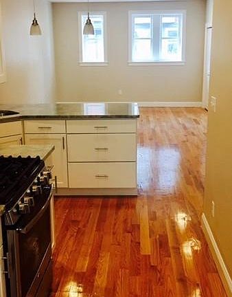 This condominium is a complete gut renovation of the old Quencher Tavern, ideally located between East Broadway and Carson Beach. The unit now offers all the features you would expect including a great layout with new plumbing, heating, wiring, etc. The stunning gourmet kitchen contains shaker style cabinets, stainless steel appliances and quartz stone countertops. This bi-level 2 bedroom, 2 bathroom condo also has hardwood floors throughout, central A/C and plenty of recessed lighting. The downstairs bedroom offers great flexibility so it can also be used as an office/guest room or family room too. The backyard has been turned into to a beautiful stone patio for this unit's exclusive use...all this just 3 blocks to the beach!!!