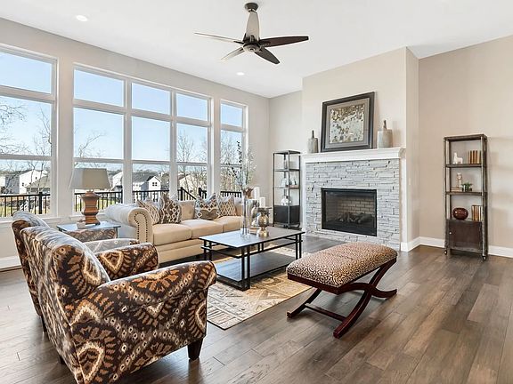 Move In Ready!!The Sterling Ranch has a wonderful open flow. When you enter the home into the foyer you see in front of you the inviting Great Room with a window wall and gas stone surrounded fireplace and to one side the Dining Room. On one side of the home you have the hearth room, breakfast room and kitchen with 42" white wall cabinets, quartz countertops and a nice size island. The other side of the home are the 3 bedrooms and a private study. The Owner's Suite is separate from the other bedrooms due to the layout of closets and baths to give it privacy. It also includes a large walk-in closet and luxurious bath with a corner tub, separate shower and 2 separate vanities. Spacious 9' ceiling throughout the home. 3 Car Garage. Extensive hardwood flooring throughout.