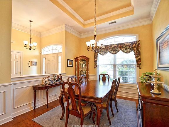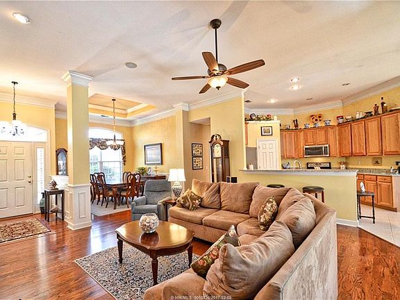 A beautiful home on one level, and a pleasure to show! It features wood floors, open floor plan, fireplace, high ceilings, separate dining room & breakfast room. Kitchen re-modeled in 2016. Granite counter tops! Great kitchen to work in. Gas fireplace. The floor plan is perfect for guests with bedroom separation. Two guest bedrooms. Amazing custom built cabinets in laundry room. Newer heat/ AC unit. Over sized screened lanai. Enjoy the view and freshly conditioned floors on the lanai. Golf & lagoon views. Only steps to the community clubhouse and pool. Near Savannah, Hilton Head, & beaches!