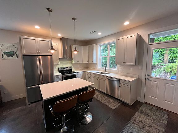 Craftsman style bungalow in quiet neighborhood in the Eastern part of West Asheville. Built in 2019 and in GREAT condition. Walk/bike to Carrier Park, River Arts District and greenway. Available early July 2025. Views over French Broad River with the Biltmore Estate property in distance. Here are more great things about this home: - master suite and office on main level - polished/stained concrete floors on the main level - hardwoods upper level - central heat and A/C - granite countertops - stainless appliances - breakfast bar at kitchen island - wide open floorplan - washer/dryer hook-ups - great attic storage on upper level (no drop-down stairs to climb) - attached storage shed (5'x12') - great for outdoor gear - cozy patio out back surrounded by mature landscaping - off-street parking for 2 cars Please note: this is an unfurnished home. furniture in photos are property of current tenant. Address is 170 Joyner Ave THIS IS A RARE FIND Terms: $20 application fee, one-year lease with first and last month's rent plus $2,500 security deposit. Landlord and tenant share equally in landscape care. Tenant responsible for all utilities. Only GENTLE pets considered. $20 application fee, one-year lease with first and last month's rent plus $2,500 security deposit. Landlord and tenant share equally in landscape care. Tenant responsible for all utilities.