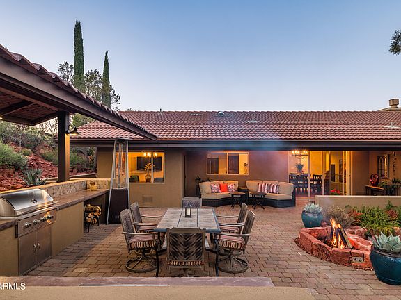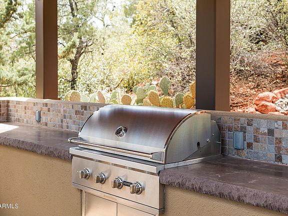 Extraordinary turn-key luxury home completely remodeled inside and out with superior finishes! All interior and exterior furniture, art, décor, infrared dry sauna, and housewares seen in photos are included in price! Red Rock views are exceptional from great room, kitchen, bedrooms, and all outdoor living spaces. Since 2018, owners have done extensive remodeling with 2 water features; incredible built-in outdoor kitchen/barbecue (covered) with pavered dining patio & more! Red rock viewing decks from all main rooms. New A/C; new electric patio cover on lounging deck. List of improvements (3 pages) available in MLS listing documents. Owner suite & guest bedroom on main level with 2 spacious bedroom/bathroom en-suites on lower level. Move-in ready today. All housewares & furniture available!