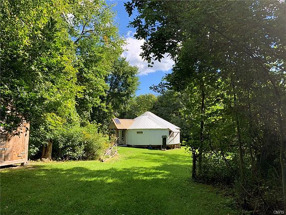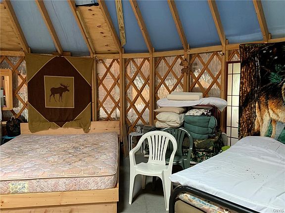 This totally unique property sits on a bend of the Oswegatchie River known as Buttermilk Falls. Current owner has transformed the land clearing a level area, leaving trees for seclusion from the road. Nestled out of view is a 750Sq ft Yurt. This is a non taxable structure and a hidden treasure. Fully insulated with a propane heater means you can use it for 3 seasons. 110 Volt power would be provided from a generator and lights and fans run from the solar panel. Great place for "Glamping" or to build a permanent structure. A grass slope leads down to the river, where you are greeted with some of the prettiest views on the river. A tranquil spot to fish or just enjoy the river. A large shed provides great storage for your kayaks or canoes.