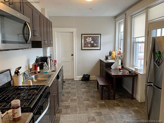 NO BROKER FEE 2 bed. Modern eat in kitchen with dishwasher. Porch off the kitchen. On the B line train . Close to Longwood medical, Boston university and BC.