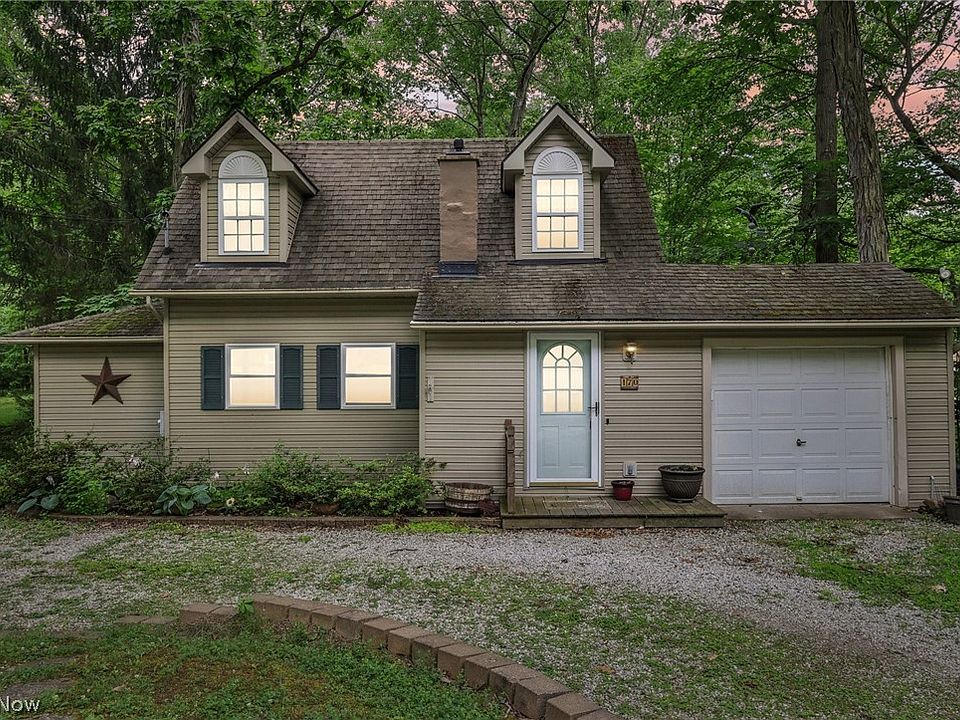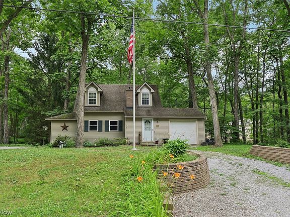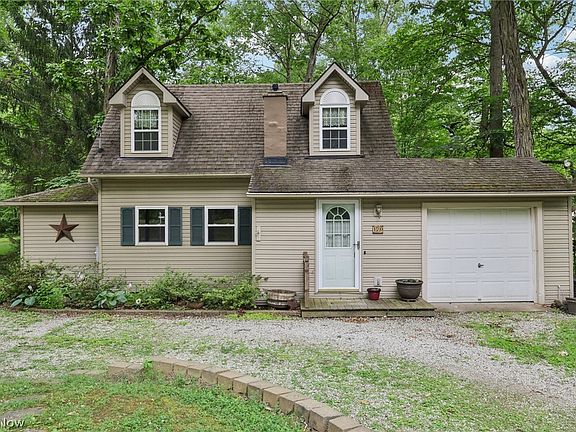 If you're not already a nature enthusiast, you will be soon! Tucked away on 2 peaceful acres, this charming lodge-style cape home offers a rare serene living experience. Situated right next to the Cuyahoga Valley National Park, one of only 63 national parks in the country, it's like having a nature conservatory in your own backyard! The Kendall Park area boasts some of Ohio's most famous natural attractions, from fishing and picnicking at Kendall Lake to top-notch hiking and biking trails at The Ledges. With convenient access to shopping, dining, and major commuter routes to boot, this location is truly a treasure. The circular driveway and speckling of shaggy bark hickory trees enhances the appeal of the adorable exterior with functional dormer windows. The attached one-car garage provides easy access to the spacious kitchen, complete with gleaming granite countertops, a large farm sink, recessed lighting, updated appliances that remain, and a dinette leading to the elevated rear deck. The family room offers a bright ambiance with a large picture window overlooking the lush, wooded backyard with a brook running through it. A cozy wood-burning fireplace adds charm to the room, perfect for gathering. Indoor/outdoor flow is made easy with secondary access to the deck with nature-rich surroundings that just can’t be beat. A first-floor bedroom and nearby full bath with a laundry area make chores a breeze. Upstairs, a private ensuite bedroom with warm wood floors awaits. A walk-out basement offers extra storage space. For hobbyists, craftsmen or collectors, the outbuilding and heated workshop present exciting possibilities. Don't miss out on this gem – schedule your showing today!