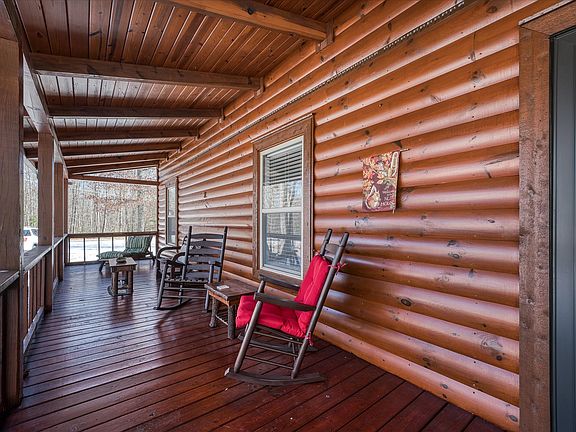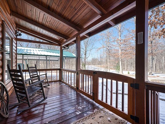 Discover the charm of this stunning log home, eagerly awaiting its new owners. Featuring 3 spacious bedrooms and a beautifully designed bathroom, this residence boasts an inviting open floor plan that encourages gatherings and relaxation. Inside, enjoy the warmth of elegant hardwood floors and a generously sized kitchen, perfect for culinary adventures. Embrace the serenity of nature from the covered front porch or back porch where you can soak in the sights and sounds of wildlife on nearly 2 acres of picturesque land. For those with hobbies or storage needs, you'll appreciate the convenience of two detached garages, with one offering electrical access for your projects. Don’t miss the chance to call this enchanting property your home.