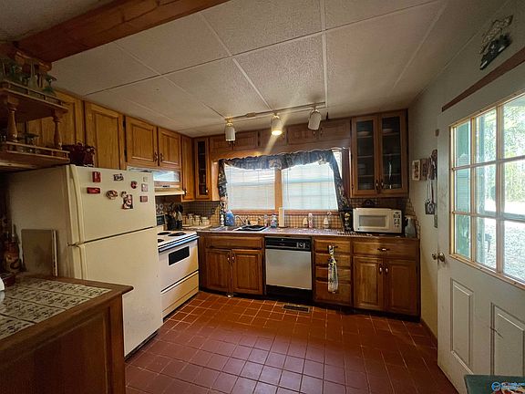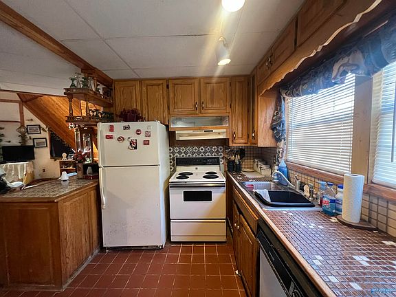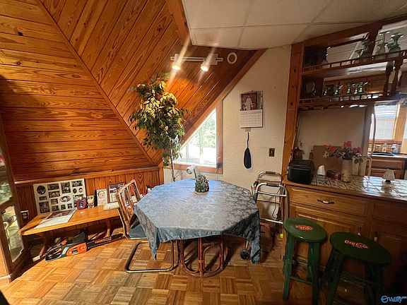 Charming chalet style home located in the Georgia Mountain community just outside Guntersville city limits and about a 10-minute commute to Lake Guntersville boat launches. This home has 2 bedrooms & 2 baths, pine plank walls and wood floors, and a newer central unit, 2 storage buildings, decks and covered front porch. This is an estate property and is being "Sold As" with no repairs. This will make a great fixer upper for the money and has public water and Spectrum internet available all located on a county paved road.