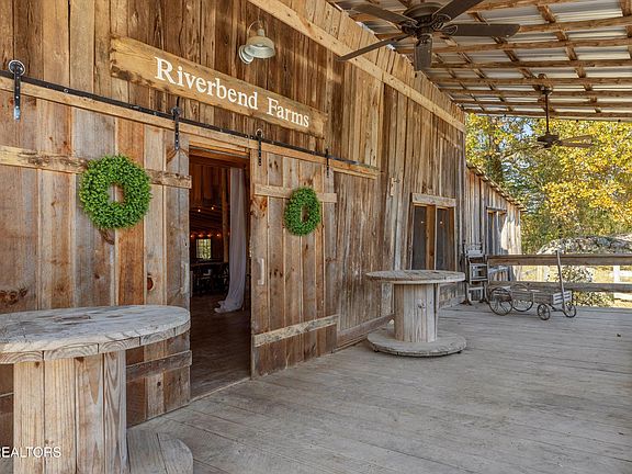 If you've ever wanted to own a wedding and events venue, now is your chance! Located in Tellico Plains, Riverbend Farm is a 34-acre equestrian estate offering over 1600 ft of river frontage along the Tellico River and offering expansive mountain views of the Nantahala National Forest. This property has operated for multiple years as a full scale wedding venue and comes complete with multiple structures including two separate homes, a wedding venue barn, a bunk barn with 18 bunks and full kitchen, a horse stable with 2 custom-built horse stalls, 1 wash bay w/hot & cold water, tack room & feed area, and it even includes a tree house with more bunks down by the creek! There is over 3000' ft of Kentucky Poplar horse fencing, a picturesque pond, and 4 separate fenced cattle/horse fields with Ritchie watering systems in each field. The primary custom built cabin is just over 1000 sf, has a family room with gorgeous stone fireplace and upstairs there are queen size beds flanking each side of the upper level, along with 4 built in bunks. Another full size barn features separate living area with commercial grade appliances and 18 bunks on the upper level. The original farmhouse on the property offers 2BD and 1.5BA and approximately 1400 sf. Riverbend Farm is the perfect place to spend time with family and friends, host retreats, enjoy nature and soak in the incredible views! Gorgeous land and mountain views like this do not come along very often. With a private creek and the Tellico River on property - you will find this to be a piece of paradise! Property information represents the cumulative beds, baths, and square footage of each dwelling.