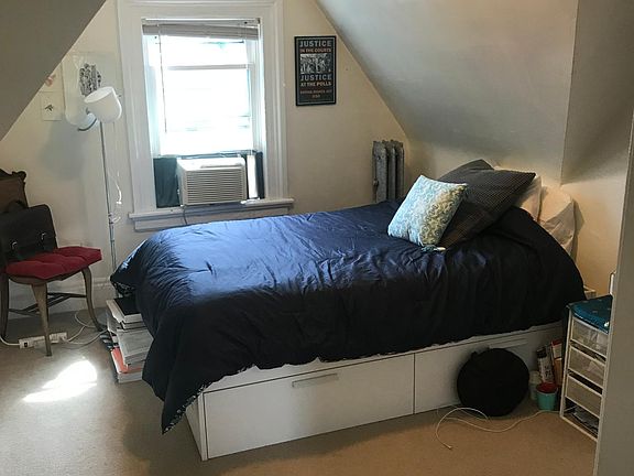 Commuter's dream: 1 mile from 2 train stops with direct access to NYC, bus stop at corner of the house, walking distance to shops and restaurants, friendly and professional co-tenants. Right side, 3rd floor of a multiplex. Attic apartment with 1 bed, updated bath with soaking tub and separate shower, efficiency kitchen with compact refrigerator, separate eat-in area, and living room. No Stove. Many improvements in progress including painting, refinishing stairs, new fans and fixtures. New Vinyl siding just installed and new landscaping! 1st months rent & 1.5 month security. Background report tenant s responsibility. **HEAT & HOT WATER INCLUDED** **LAUNDRY ON SITE** **DRIVEWAY PARKING** **EXTRA STORAGE IN BASEMENT** **OPEN TO ONE SMALL PET, MUST BE TRAINED**