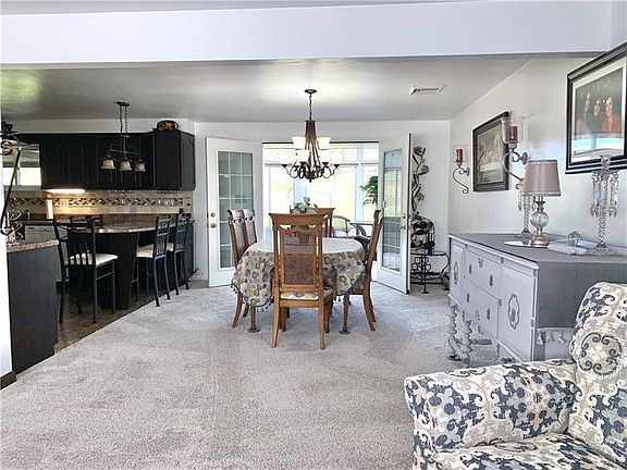 Immaculate Sprawling Ranch offers quality updates throughout and In-law Suite. Features open floor plan, spacious modern kitchen with beverage cooler, pantry and breakfast bar. Dining room with french doors to bright and beautiful heated sun room, huge living room with custom drapes, family room with wood burner and pella sliding door to covered patio. Updates including carpet, paint, HVAC, 200 amp breaker box, hot water tank, roof, windows and more. Lower level offers a newer 4th bedroom with full bath and a separate apartment with a custom kitchen, 5th bedroom and full bath. Basement is clean and dry and offers storage in the furnace/Laundry room. Over-sized integral 2 car garage is finished and spotless. Situated on 1+ acre with 24x28 heated 2 car, 2 story garage overlooking the country side. Public water with well still in use. Nothing to do but move in!