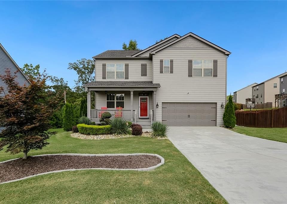 Welcome to 170 Lost Cove Dr, a stunning residence nestled in the prestigious Overlook at Camp Creek subdivision in Atlanta. This meticulously maintained home offers curb appeal and charm from the moment you arrive. The inviting front porch, complete with rocking chairs and updated light fixtures, sets the tone as you approach the beautiful red Craftsman door. As you step inside, you’ll be greeted by gleaming LVP flooring that flows throughout the main level. To the left, a formal dining room awaits, perfect for hosting dinners. The hallway leads to an open-concept living area that seamlessly blends the family room and the chef’s kitchen. This kitchen is a true showstopper, boasting a large island with pendant lighting, gray soft-close cabinets, a tile backsplash, and brand-new stainless steel appliances. The main level also features a spacious bedroom and a full bathroom, ideal for guests or older family members. Upstairs, you’ll find a versatile additional family room, perfect for a home office or media space. The oversized master bedroom, facing the front of the home, offers an updated en-suite bathroom with a soaking tub, a tiled glass-enclosed shower, and a double vanity with granite countertops. Three additional bedrooms, each with ample storage, and a full guest bath complete the upper level. The unfinished daylight walkout basement provides endless possibilities for customization. Outside, you’ll enjoy a covered patio deck and a screened-in porch, both overlooking a private, fenced-in backyard—perfect for pets, family gatherings, and entertaining friends. This home is packed with custom upgrades, including a master closet, kitchen pantry, an upgraded master shower, and a whole-house generator. Additional features include crown molding, shadow box ceilings, wainscoting, upgraded landscaping, a new 2023 roof, epoxy garage floors with custom storage, and an irrigation system. Conveniently located just minutes from the airport, Camp Creek Marketplace, shopping, dining, entertainment, and major highways, this home truly has it all. Don’t miss your chance to own this exceptional property—schedule your private tour today!