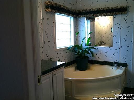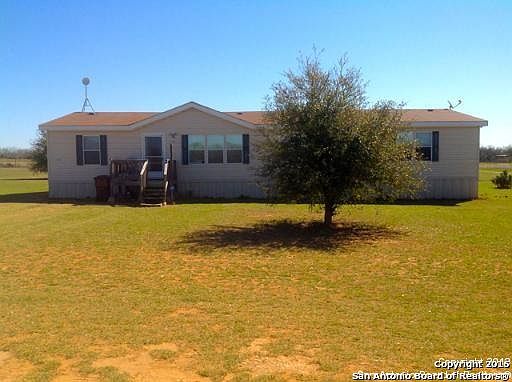 4BD/2BTH, 2,112 sq.ft. manufactured home on 1.3 acres in fantastic location with easy access to IH 35. This spacious home features an open floor plan, 2 dining areas, island kitchen w/ walk-in pantry and a split master suite with walk -in closet and master bath with his and hers vanities, garden tub and separate walk in shower.