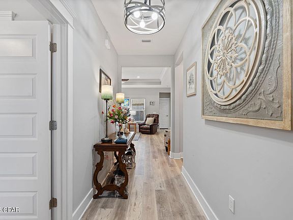 'CURRENTLY UNDER CONTRACT, SELLER WILL CONSIDER BACKUP OFFER.' Recently constructed in 2021 this 4 Bedroom is in a prime location less than a mile to the Beach and various Parks make it a very desirable home. Pier Park, Frank Brown Recreation Park & Aquatic Center and a short walk to Scott Field Park enhances its appeal, especially for those seeking a vibrant and convenient lifestyle. Charming curb appeal, 2 car garage, 8' privacy fence, Pergola & large lot with plenty of room for a pool. The open-concept layout and the inclusion of Shiplap walls in the dining, living room, and primary bathroom add a touch of character. With a seamless flow between the living, dining, and kitchen areas, with vinyl flooring throughout, Tray ceilings in the living area and primary bedroom. The open kitchen is a chef's delight, featuring stone countertops, Shaker cabinets, Subway backsplash, large 8' bar, stainless-steel appliances and Reverse Osmosis water filtration system. The Primary bedroom's 2 Walk-in closets, adjoining luxurious bathroom with free-standing soaking tub and walk-in shower with tile walls and floor. Attic has storage areas. The availability of space for parking an RV or boat is a rare find near these amenities, along with No HOA fees for this home. Floor plan in photos. Come see this appealing home with many extras.