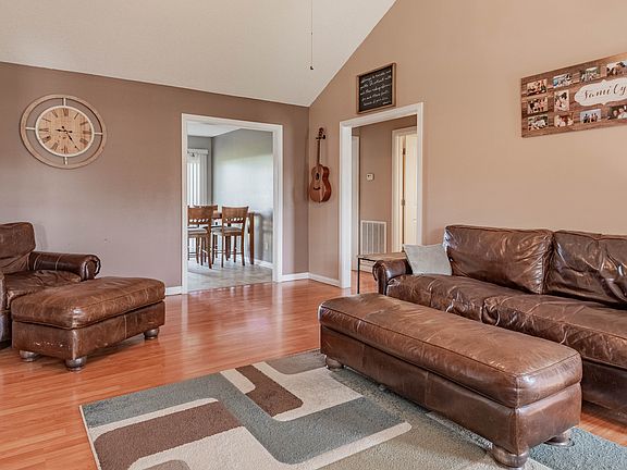 Beautiful home on a large lot, 3 bedroom 2 full baths, oversized laundry room and vaulted ceilings in the living room. Huge back yard with privacy fencing. 10x12 Barn style shed perfect for your mower. Covered front porch and landscaped for easy maintenance. Rheem AC unit installed 2017. LED lighting throughout.