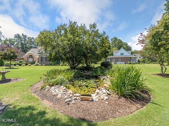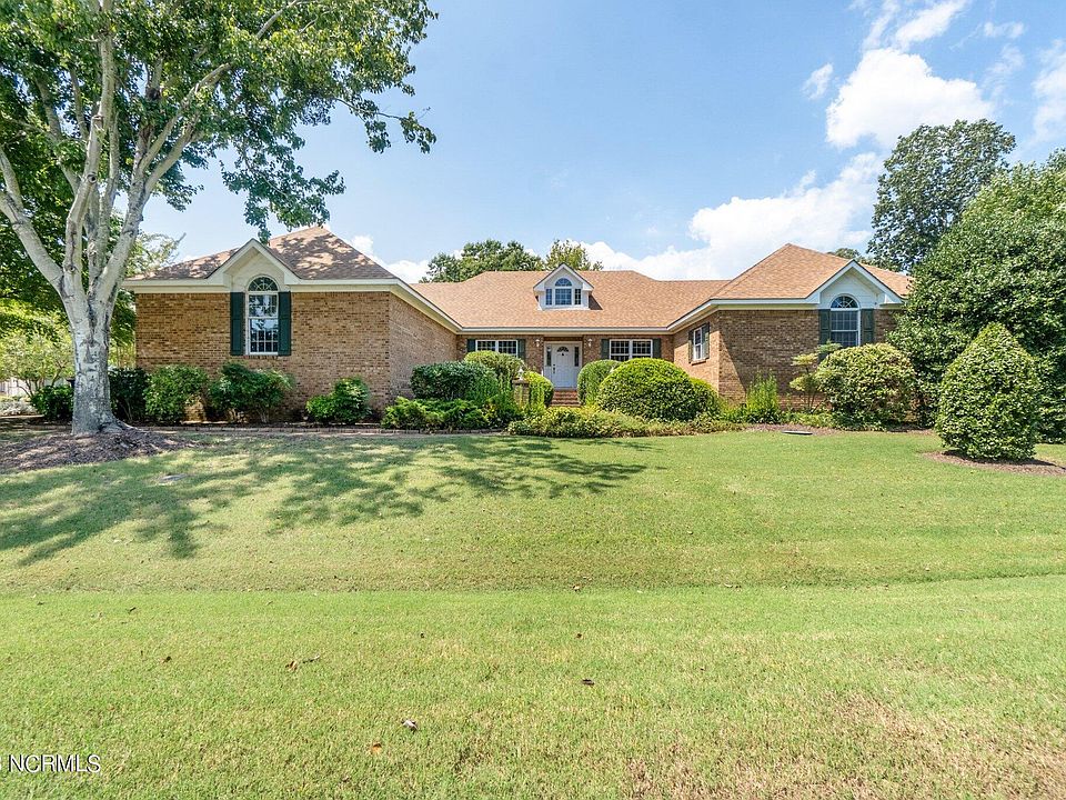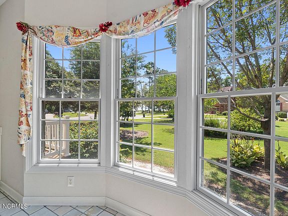 Nice one level brick home across street from 9th hole and Sound on a great culdesac passing under the covered bridge