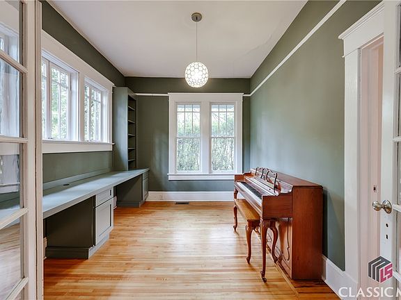 This beautiful home immediately catches your eye with its classic covered front porch, shake shingle exterior, handsome navy exterior, and large screened-in back porch. Inside, there is a multitude of details you will appreciate: hardwood floors throughout the main level, tall ceilings, natural light through the period windows, built-in bookcases, two decorative fireplaces, and much more!