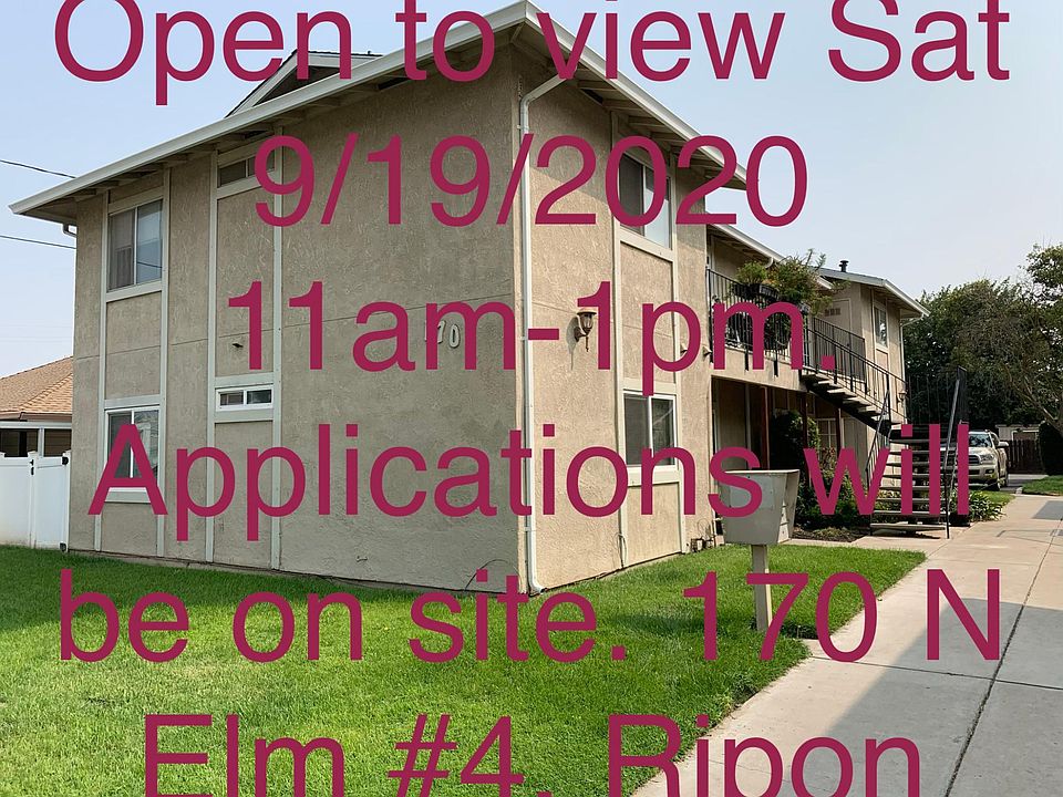 Centrally located Ripon apartment. Laundry space in unit. Upstairs w/balcony. Open to view 9/19/2020 11am-1pm. Applications on site. No emails or phone calls will be responded to- applications available on site 11am-1pm Sat 9/19/2020. Good credit and current employment required. Cat ok with pet interview and pet deposit.