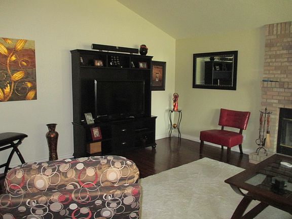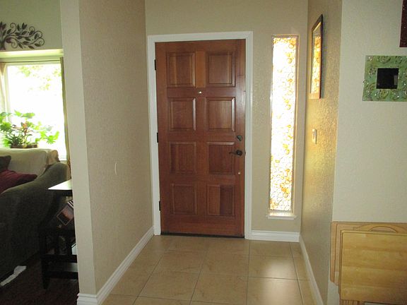Lovely well maintained home on a quiet interior street with great curb appeal. Tile entry leads to living room with fireplace, ceiling fan and laminate floors. There is a formal dining room. Kitchen has been remodeled and features granite counters, oven, microwave and dishwasher and a convenient laundry room. Hall bath has dual sinks and tile floors, bedroom one has laminate floors, bedroom two has laminate floors and a ceiling fan. The master bedroom features a ceiling fan, French doors to back yard, walk-in closet, dual sinks and a sunken tub/shower. The beautiful back yard features a large covered patio with dual ceiling fans, motion lights and a resurfaced sparkling pool with a state of the art 5 speed pump. The side yard has a storage shed and a double gate. If the storage shed is removed there is possible R/V parking. There are automatic sprinklers front & back, a 2-car semi-finished garage with automatic opener, a hot water pump and tons of storage. Home is pre-wired for alarm and has a whole house fan and an attic fan.