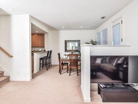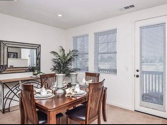 Bright Beautiful and spacious! Located at Station Square, just steps from downtown restaurants, shopping, movie theatre and coffee shop. Corner unit with new carpet throughout. Good schools, easy access to 580 and 84. Enjoy beautiful kitchen, breakfast bar, living area and covered balcony on the main floor. Townhome features spacious master bedroom on top floor with walk in closet, along with a second bedroom, another full bath and washer/dryer. Third bedroom with walk in closet and private bath at bottom floor, ideal for office or extended family. Attached 2 car tandem garage.