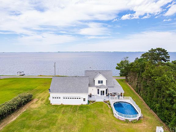 Gorgeous Waterfront Home with Unbelievable Sunrises! Experience serene waterfront living with breathtaking sunrises over the water, visible from almost every room. Enjoy views of the iconic Corolla Lighthouse and a peaceful, private lot surrounded by natural foliage on a quiet dead-end street. Key Features include: Outdoor Living: Covered back porch, wrap-around porch, and a screened-in porch with electricity. Above ground 18x33 pool with a new liner and a 4-space carport in the back. Interior Comfort: First-floor owner's suite, fireplace (propane), hardwood floors, Anderson windows, and ample storage throughout the house. Gourmet Kitchen: Touchless faucet, water filter, pull-out spice cabinets, and central vac. Also includes 3-car garage, elevated 54'' crawl space, gas hookup for grill, heat pump with additional propane furnace, and two 200-amp electric panels. Additional Amenities: Separate well for outdoor watering, supplies for an additional bathroom in the FROG, HVAC units serviced every 6 months, and 50-year architectural shingles. Flood insurance is not required for this property. Make this stunning home with modern amenities and timeless charm your own oasis.