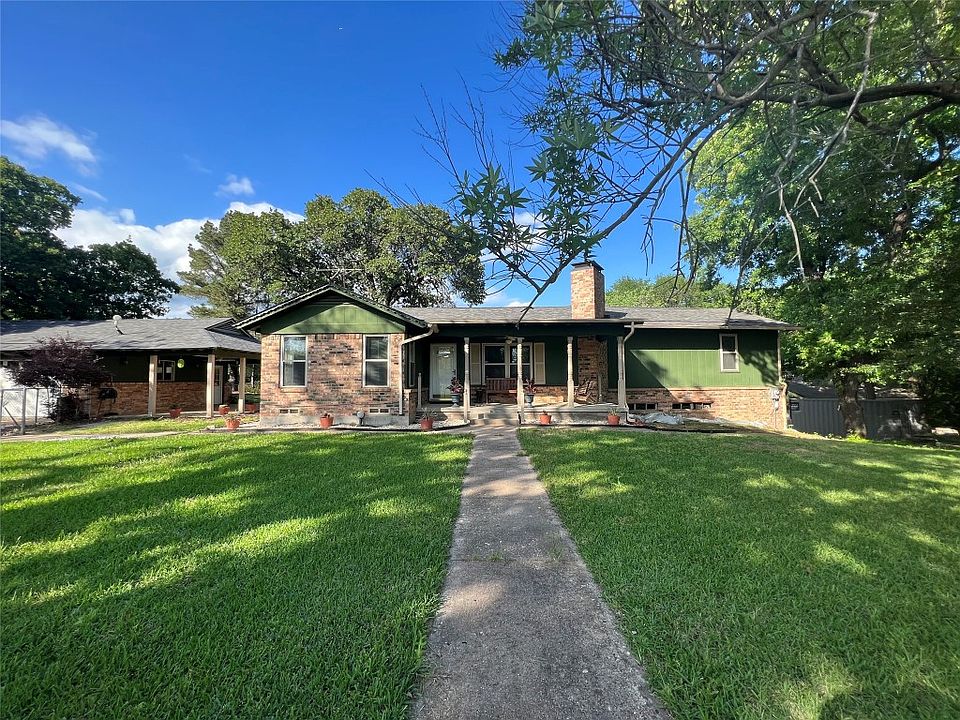 Looking for country living in this well-built ranch-style home? This house boasts two extra-large bedrooms with ensuite baths and ample closet space. The primary bedroom is 18x18 with a sizable walk-in closet and a large soaking tub. Maintain your privacy with the split-bedroom layout but come together to enjoy the fireplace in the family room. The kitchen features granite counters, stainless appliances, and an eat-in nook with storage. Off the kitchen, you have a multi-use utility room with a pantry built-ins and space for a spare fridge. Take in the colorful Texas sunsets from your front porch swing or set up a picnic under the 24x14 covered patio. The front-facing 3 car-garage features pull-through double doors and a second drive leads to the 2-car garage and storm cellar on the other end of the house. All this plus a 32x28 concrete slab with a 20ft storage container sitting on 1.4 acres outside city limits. New AC less than 1-year-old, septic pumped in Feb 2023.