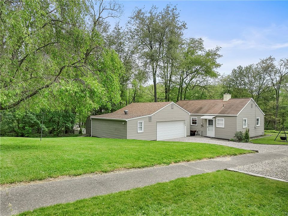 Adorable cottage style/ranch on oversized corner lot! This home has been well maintained with newer replacement windows and carefree vinyl siding! Main living area offers built-in adjustable wood shelving & display area along with wall mounted gas fireplace unit. The cozy straight line kitchen offers dishwasher, gas stove and refrigerator and access to the detached garage and utility room. Lots of storage in the 2 car garage plus adjoining workshop and pull down storage in main garage. There are also two additional detached sheds on site as well. Property is conveniently located with easy access to shopping, recreation and Rt 376 Corridor