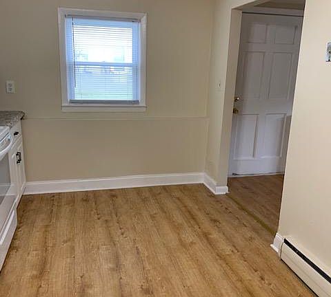 HEAT AND HOT WATER INCLUDED. 2 bedrooms, 1 bath, no stairs, eat in kitchen, new flooring, rear patio, bright, clean, respectful neighbors, yard updated, pets considered, off street parking. owner pays trash, heat, hot water, landscape, snow removal