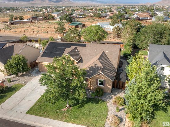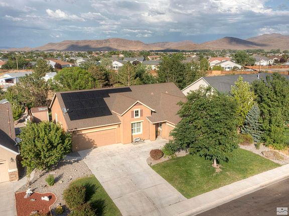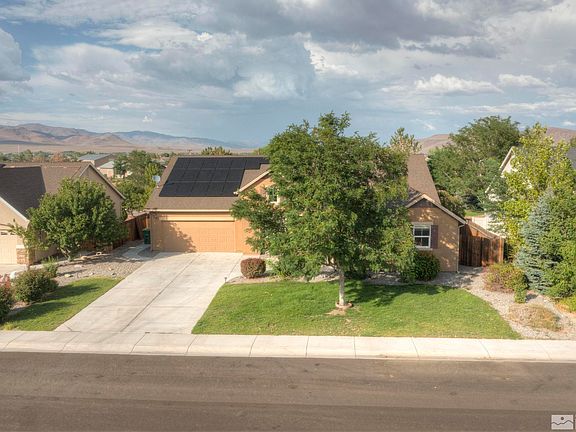 Peacefully located in the Brookhaven subdivision in Dayton, this well maintained single family home boasts 4 bedrooms, 3 baths, a split 3 car attached garage and a highly functional floorplan. Beautiful views in this prime area near BLM with endless trails await! It boasts an excellent floor plan and living space. It features nice travertine floors throughout, hardwood in formal dining area and a large kitchen with island, plenty of cabinet space with roll-out shelves!, Spacious master bedroom with large walk in closet and 2 bedrooms with Jack n' Jill sinks. Gorgeous pergola with fans and lights in the backyard creates a great atmosphere to entertain guests. Lots of pavers and wrap around patio with grass area and storage shed. Great location situated 15 minutes to Carson City and only 45 minutes to Reno. Agents, please read private remarks. Solar panels to be paid off at close of escrow with an acceptable offer to the Seller.